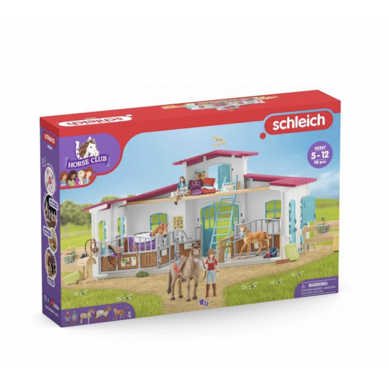 Le centre équestre de Lakeside a été mis à jour pour inclure deux humains mobiles, trois chevaux réalistes et un chat et une souris. Comprend 56 pièces pour des heures de plaisir, du harnais et de la mangeoire à un loft cool où vous pourrez vous détendre après une journée en selle.