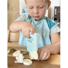Découvrez le couteau Klyv pour enfants – Conçu pour apprendre ! Notre couteau Klyv, idéal pour les enfants dès 2 ans, est pensé pour favoriser leur développement. Il encourage de saines habitudes alimentaires et développe la motricité fine et globale ainsi que la coordination. Fabriqué avec  environ 30 % de fibres de blé, il réduit la quantité de plastique. Sa forme unique en coin assure des coupes nettes et sûres, minimisant ainsi les risques d'accidents. Parfait pour la cuisine familiale, le couteau Klyv transforme la cuisine en une activité ludique et éducative qui renforce les liens familiaux et crée des souvenirs inoubliables. Idéal pour les parents à la recherche d'ustensiles de cuisine sûrs pour leurs enfants et pour les détaillants souhaitant proposer des produits de cuisine durables et adaptés aux enfants.
