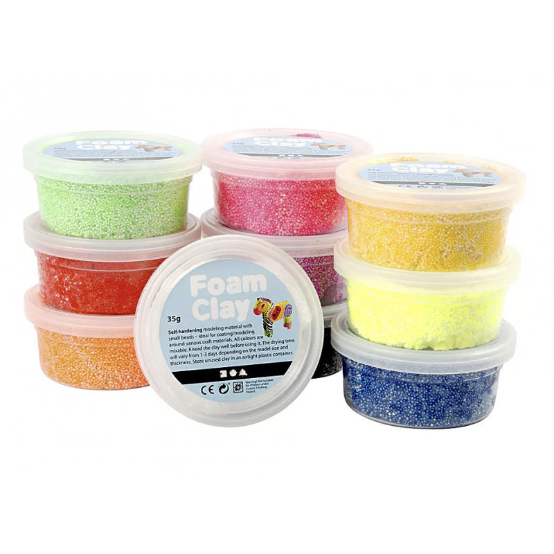 Pâte à modeler autodurcissante composée de petites billes en polystyrène. Emballée dans des pots très pratiques en plastique hermétique.