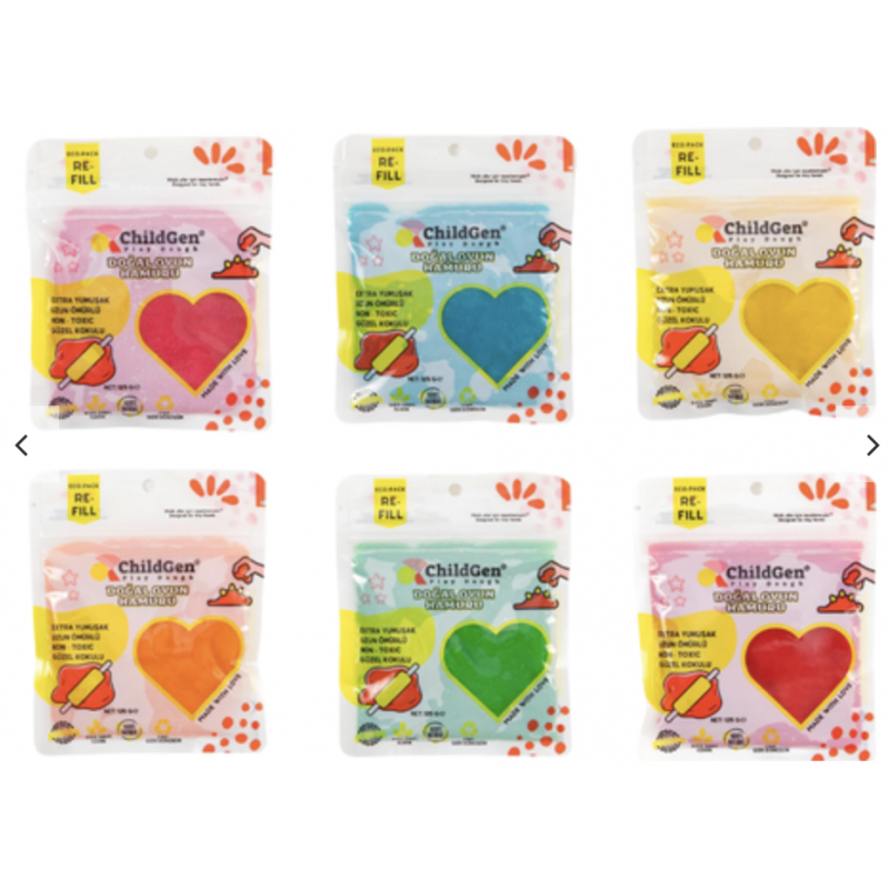 La pâte à modeler ChildGen s'inscrit dans une démarche zéro déchet grâce à ses sachets de recharge. Un procédé de mise sous vide et une fermeture zip garantissent une conservation optimale, et les sachets de 125 g sont parfaitement adaptés aux contenants des autres coffrets ChildGen.