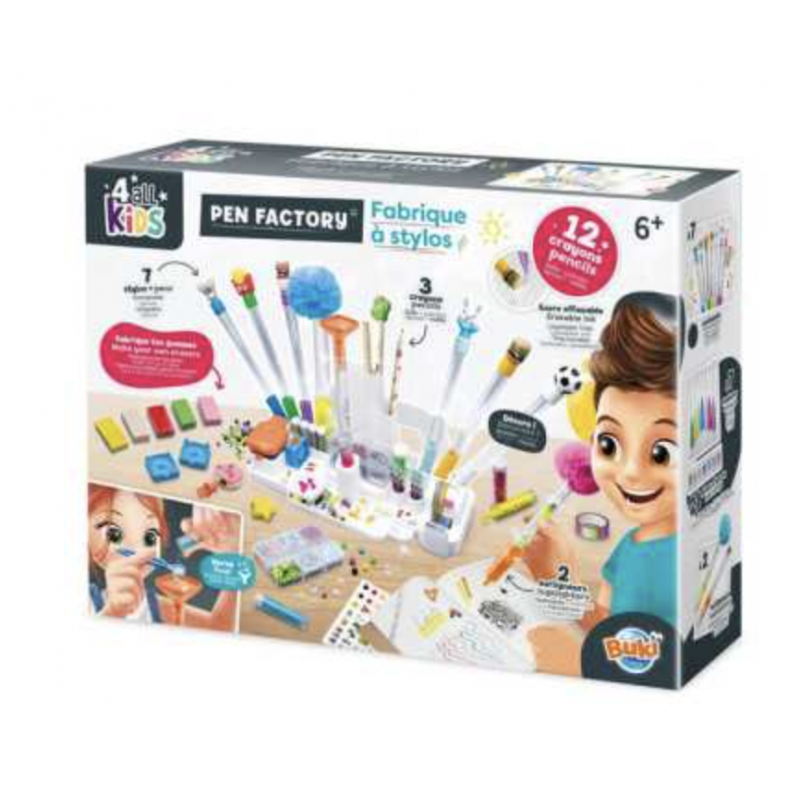 Découvrez le coffret Fabrique à stylos de Buki, un coffret créatif qui permet aux enfants, dès 6 ans, de customiser 12 crayons et du matériel de bureau selon leurs envies.