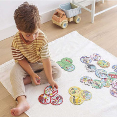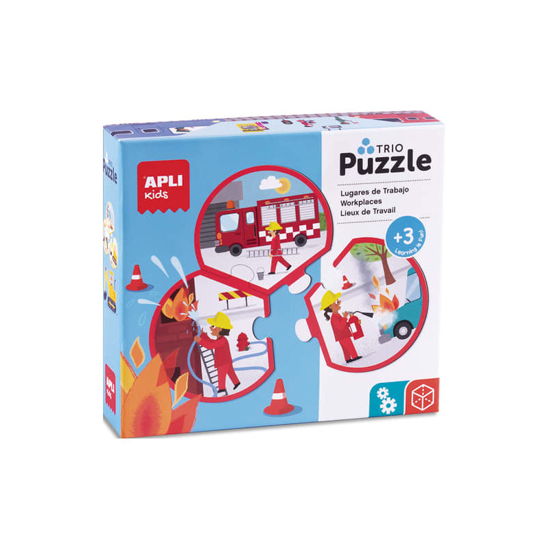 Apli Kids Trio puzzle métiers, contient au total 24 pièces arrondies de Ø 9 cm pour former 8 puzzles 3 pièces différents.