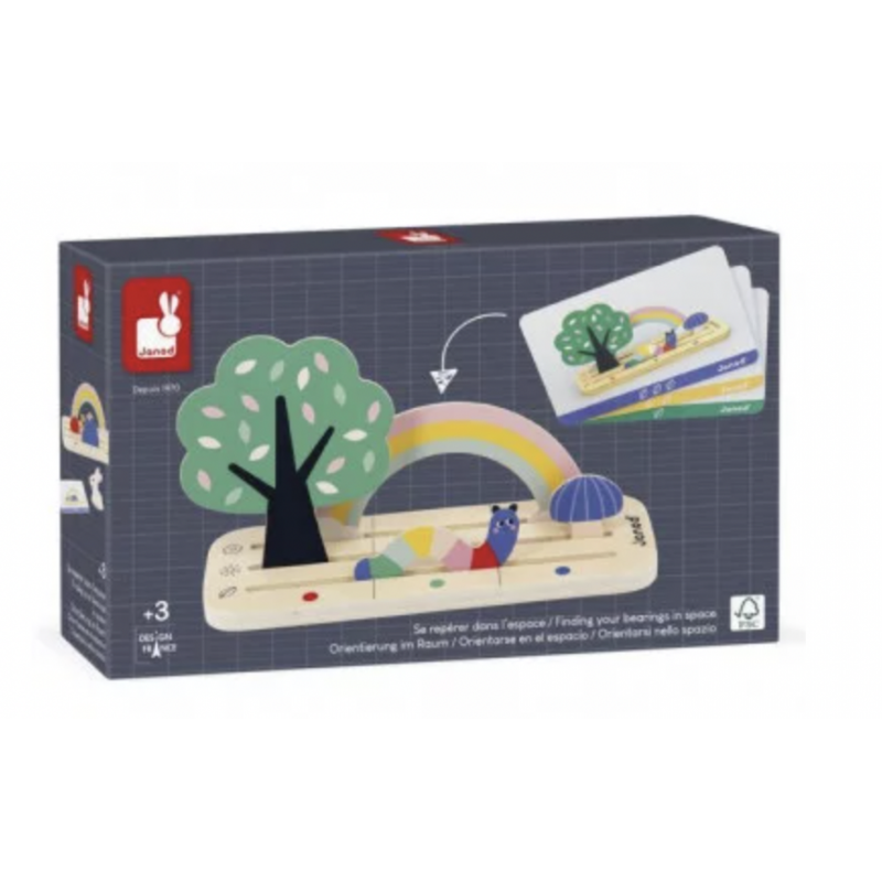 Appréhender les apprentissages de la maternelle tout en s'amusant, c'est la promesse de ce beau jeu éducatif en bois ! Il aidera les plus petits à comprendre la notion de repères dans l'espace et à enrichir leur vocabulaire ! C'est parti pour une promenade dans le jardin en compagnie de nos 8 personnages et éléments de la nature en bois : Escargot, coccinelle, arbre, chenille ... En s'appuyant sur les 12 cartes modèles recto-verso, les enfants à partir de 3 ans devront reproduire une scène sur le support en bois et par la même occasion acquérir le vocabulaire associé : à gauche/à droite, devant/derrière, à côté de ... Ils développeront également leur sens de l'observation. Il existe 3 niveaux de difficulté représentés par des couleurs sur les cartes. Au fur et à mesure, l'enfant pourra passer de 2 éléments à placer à 5. Ce jeu peut être utilisé en atelier autonome mais également en duo avec un adulte décrivant la scène au jardin que l'enfant pourra reproduire. Pratique ! Des points de couleurs placés sur le support en bois et sur les cartes modèles aident l’enfant à se repérer. Ce jeu éducatif en bois est qui plus est très joli ! Les enfants vont adorer découvrir et manipuler ces adorables petits animaux et ces éléments du jardin très colorés ! Une notice explicative vous permettra d'utiliser au mieux ce jeu destiné aux enfants de petite, moyenne et grande section de maternelle.