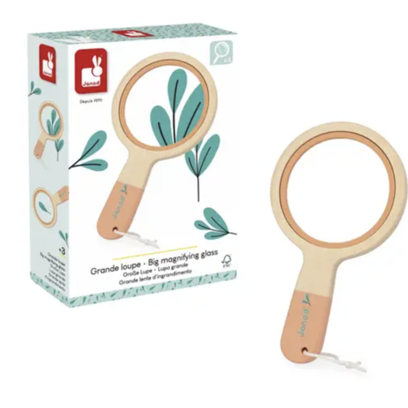 Explorez le monde de plus près avec cette super loupe en bois. Parfaite pour les petits curieux, cette grosse loupe au design robuste et coloré permet de partir à la rencontre des mystères de la nature .. en grand ! Avec son grossissement x4, elle agrandit les moindres détails : une feuille, un insecte, un caillou. tout devient fascinant ! Facile à prendre en main par les enfants, à la maison, au jardin ou en balade, cette loupe devient vite l'outil préféré des petits explorateurs en herbe ! Jouet de plein air en bois FSC TM, pour les enfants à partir de 3 ans.
