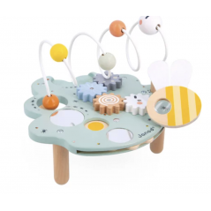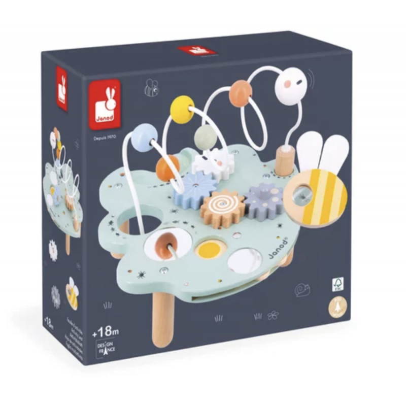 Bienvenue sur la feuille géante de madame la chenille, et cette gourmande en a déjà grignoté un morceau ! Elle peut désormais s’amuser aussi bien dessus, que dessous. Sur cette feuille se trouvent pleins d’activités pour occuper les tous petits : un grand looping pour balader la chenille, des engrenages amovibles, une roue des couleurs, 3 miroirs, et une loupe en forme d’abeille pour observer tous les petits insectes qui se cachent sur la feuille ! Jouet idéal pour que votre enfant développe sa motricité fine et appréhende les formes et les couleurs. Jouet d’éveil en bois certifié FSC, pour les enfants à partir de 18 mois.