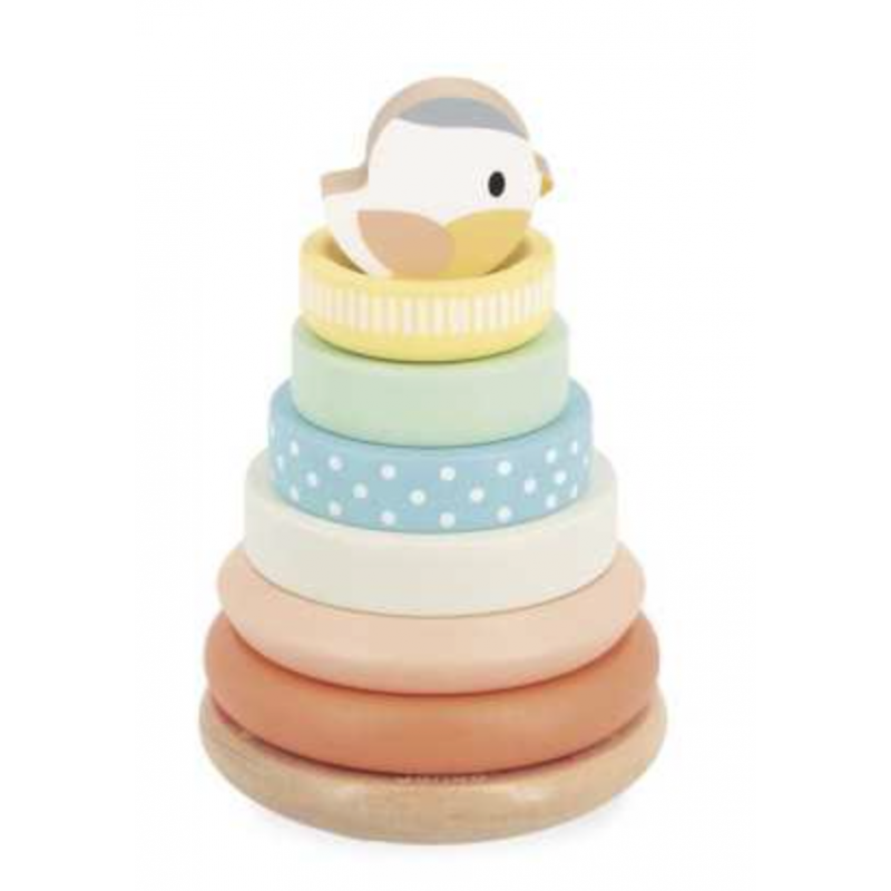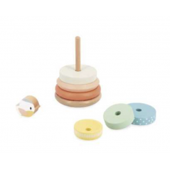 Ce jouet à empiler, monté sur une base culbuto, se compose de 7 pièces de couleurs douces et harmonieuses, dont les deux dernières forment un adorable petit oiseau niché confortablement dans son nid. Ludique et éducatif, il invite les tout-petits à manipuler, empiler et explorer tout en s’amusant.