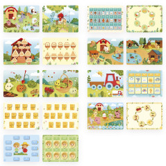 Livre évolutif sur le thème de la ferme, livré dans une jolie boite cadeau. Il comprend 20 pages d'activités ludiques avec 158 pièces à placer à l'intérieur. Les tout-petits découvriront les animaux de la ferme, leur habitat, le cycle de vie de la poule, les fruits et légumes du jardin... et les plus grands pourront apprendre les chiffres et l'alphabet (minuscule et majuscule) tout en s'amusant. 3 anneaux en plastique, détachables, permettent aux parents de faire évoluer l'intérieur du livre en sélectionnant les pages adaptées à l'âge de l'enfant. Développe la motricité fine et l'apprentissage en général. Livre en carton FSCTM, pour les enfants à partir de 3 ans. les enfants à partir de 3 ans.