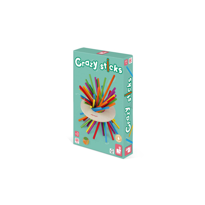 Fais preuve de sang-froid et défie tes adversaires avec ce jeu d'adresse haut en couleurs ! Le but de ce jeu est simple et accessible dès 3 ans. Votre enfant devra lancer le dé couleurs et retirer un des bâtons correspondants. Mais attention, au fur et à mesure l'équilibre devient de plus en plus fragile et le disque qui retient tous les bâtons descend, descend ... ! Si le disque touche la table, c’est perdu ! Ce jeu développe la motricité fine et la stratégie. Il sera idéal lors des journées pluvieuses en famille ou pour occuper les enfants avant le repas ! Ce jeu inclus 36 bâtons, un disque et un dé en bois. Pour encore plus de fun, jouez jusqu'à 6 joueurs. Les règles du jeu sont disponibles en français, anglais, allemand, néerlandais, espagnol et italien. Disque : Ø 13 cm. Bâtons : 17,5 cm x Ø 0,6 cm.