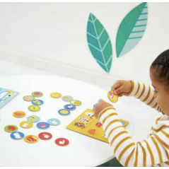 Le jeu est composé de grosses pièces adaptées aux petites mains. Votre enfant s'amusera à replacer les différents éléments dans chaque pièce de la maison en s'aidant des couleurs.