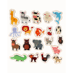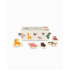 Ce magnifique ensemble de 20 pièces met en scène d'adorables animaux bien connus qui captivent immédiatement l'attention des enfants. Fabriqué en bois de haute qualité et recouvert d' une peinture écologique et non toxique , il est parfaitement sûr pour les enfants.