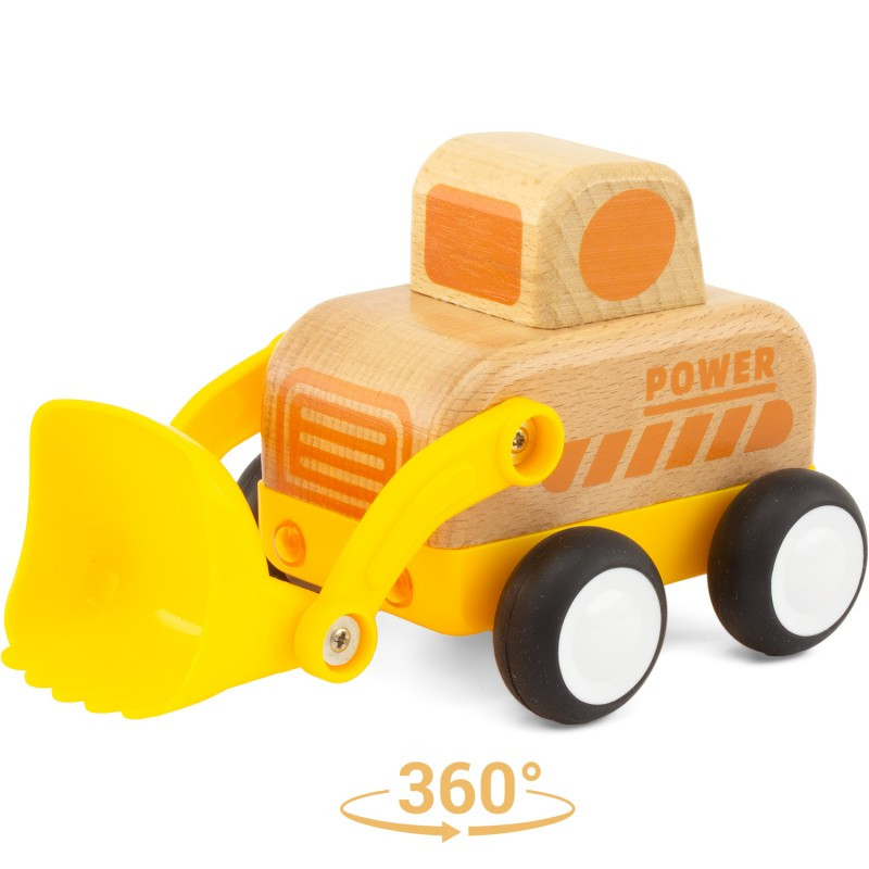 ⦁ Interactivité : La chargeuse est mobile, et en appuyant sur le jouet, les phares s'allument et 3 sons différents de chantier se déclenchent.