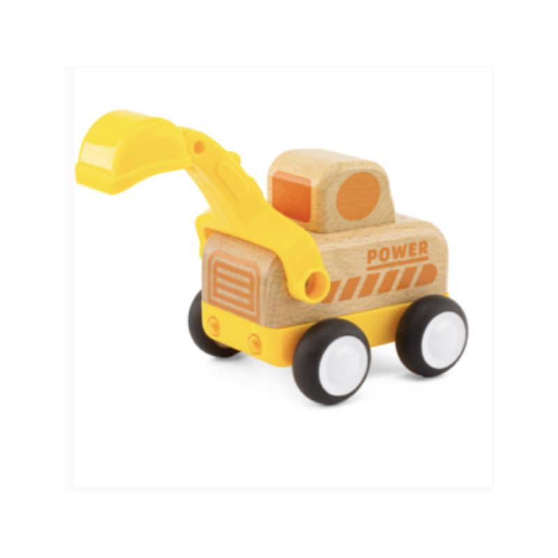 ⦁ Interactivité : La pelleteuse est mobile, et en appuyant sur le jouet, les phares s’allument et 3 sons différents de chantier se déclenchent.