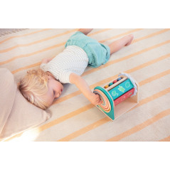 À chaque pivot, bébé découvre une couleur éclatante, une illustration rigolote, son reflet dans le miroir. et même une face avec de petites perles. Un jouet plein de surprises pour stimuler la motricité fine, la vue et la curiosité !
