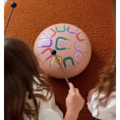 Le Tambù pour enfants est un petit instrument de percussion en métal, il est creux. Il offre une sonorité claire, pure, harmonieuse, voir envoûtante. Spécialement conçu pour les jeunes musiciens, il permet une introduction ludique à la musique en stimulant la créativité musicale. Il est utilisable avec les mains ou les baguettes fournies. Le petit sac permet un rangement et un transport aisé. Le tambù existe en plusieurs couleurs