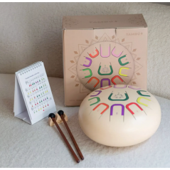 Le Tambù pour enfants est un petit instrument de percussion en métal, il est creux. Il offre une sonorité claire, pure, harmonieuse, voir envoûtante. Spécialement conçu pour les jeunes musiciens, il permet une introduction ludique à la musique en stimulant la créativité musicale. Il est utilisable avec les mains ou les baguettes fournies. Le petit sac permet un rangement et un transport aisé. Le tambù existe en plusieurs couleurs