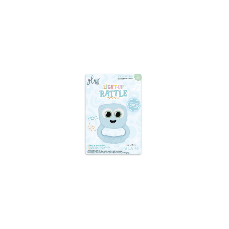 Le hochet lumineux Glo Pals est conçu pour éveiller les tout-petits dès les premiers mois, en stimulant leurs sens tout en favorisant le développement moteur. Il est facile à attraper et s'illumine à chaque mouvement offrant un retour visuel immédiat et captivant. Parfait pour le jeu sur le ventre, ce hochet combine lumières changeantes, textures douces et sons réguliers pour apaiser et stimuler bébé.