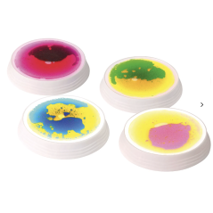 Matériaux : Plastique, eau avec liquide cosmétique coloré, métal.