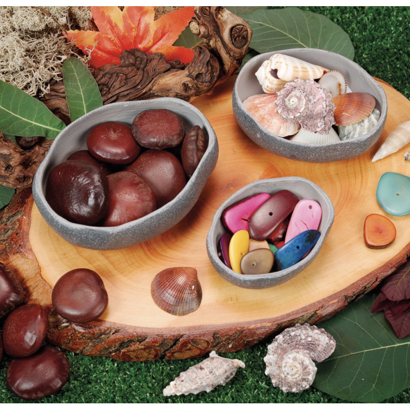 Ce set de trois bols gigognes stimule l'imagination et convient à une utilisation dans l'eau, le sable et la boue. Ils permettent de transporter et de présenter divers matériaux dans l'environnement de l'enfant. Faciles à laver après utilisation, les bols sont prêts à être utilisés pour verser et mélanger. Le set comprend trois bols résistants de 85 à 120 mm de diamètre, fabriqués à partir d'un mélange de pierre durable. Convient aux enfants de 18 mois et plus.