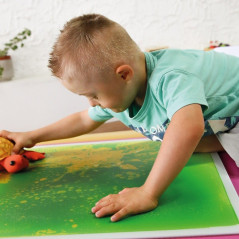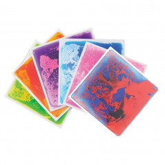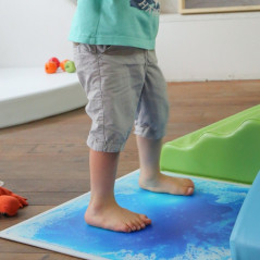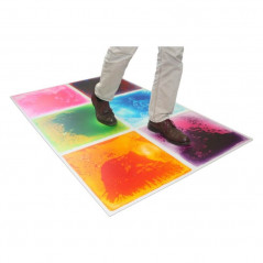 Pour composer un chemin sensoriel, installer un parcours de motricité ou d'équilibre. Ces dalles sensori-motrices sont conçues pour que l’on marche dessus, on peut aussi y passer en fauteuil roulant. Il suffit d’appuyer sur la dalle pour que le gel renfermé à la surface soit mis en mouvement et crée de belles formes mouvantes et colorées.