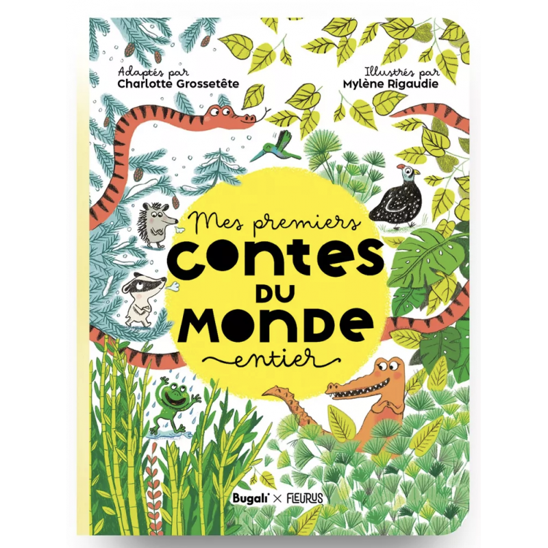 Un recueil de contes de Charlotte Grossetête & Mylène Rigaudie (Fleurus), adapté par Bugali, pour s'aventurer, rire, danser et s'évader ! Avez-vous déjà entendu l’histoire des animaux réfugiés dans une moufle abandonnée ? Et celle du courageux petit colibri face au terrible incendie ? Voulez-vous découvrir comment la pintade s’est moquée du crocodile ? Partez explorer le monde en compagnie des animaux de ces quatre contes traditionnels ! Ce livre contient des histoires, musiques, dialogues, chansons, bruitages.