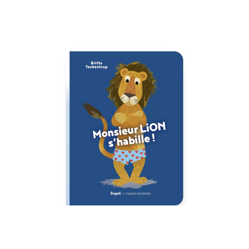 Un album de Britta Teckentrup (Bayard Jeunesse), adapté par Bugali, pour apprendre à s'habiller en chantant et avec malice ! Monsieur Lion est invité à une fête ! CATASTROPHE ! Il ne sait pas comment s’habiller... Un tutu ? Un maillot ? Un pyjama ? Son ami Singe veut l’aider. Mais ces déguisements le font surtout bien rigoler ! Ce livre contient des histoires, musiques, dialogues, comptines, bruitages.
