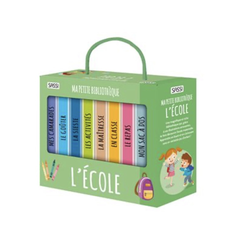 Huit petits livres en carton pour découvrir l’école maternelle : les activités, la sallede classe, le repas, la sieste, la maîtresse et tout un tas d’autres choses amusantes.Tu verras qu’aller à l’école, c’est génial !