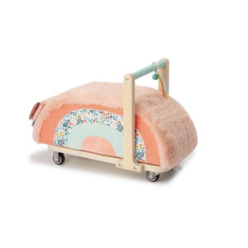 Installé confortablement sur ce porteur tout doux, les petits pourront faire la course dans la pièce en toute sécurité. Le petit sac est amovible. Quand l'enfant devient trop grand pour le porteur, le siège est détachable et peut être utilisé comme pouf.